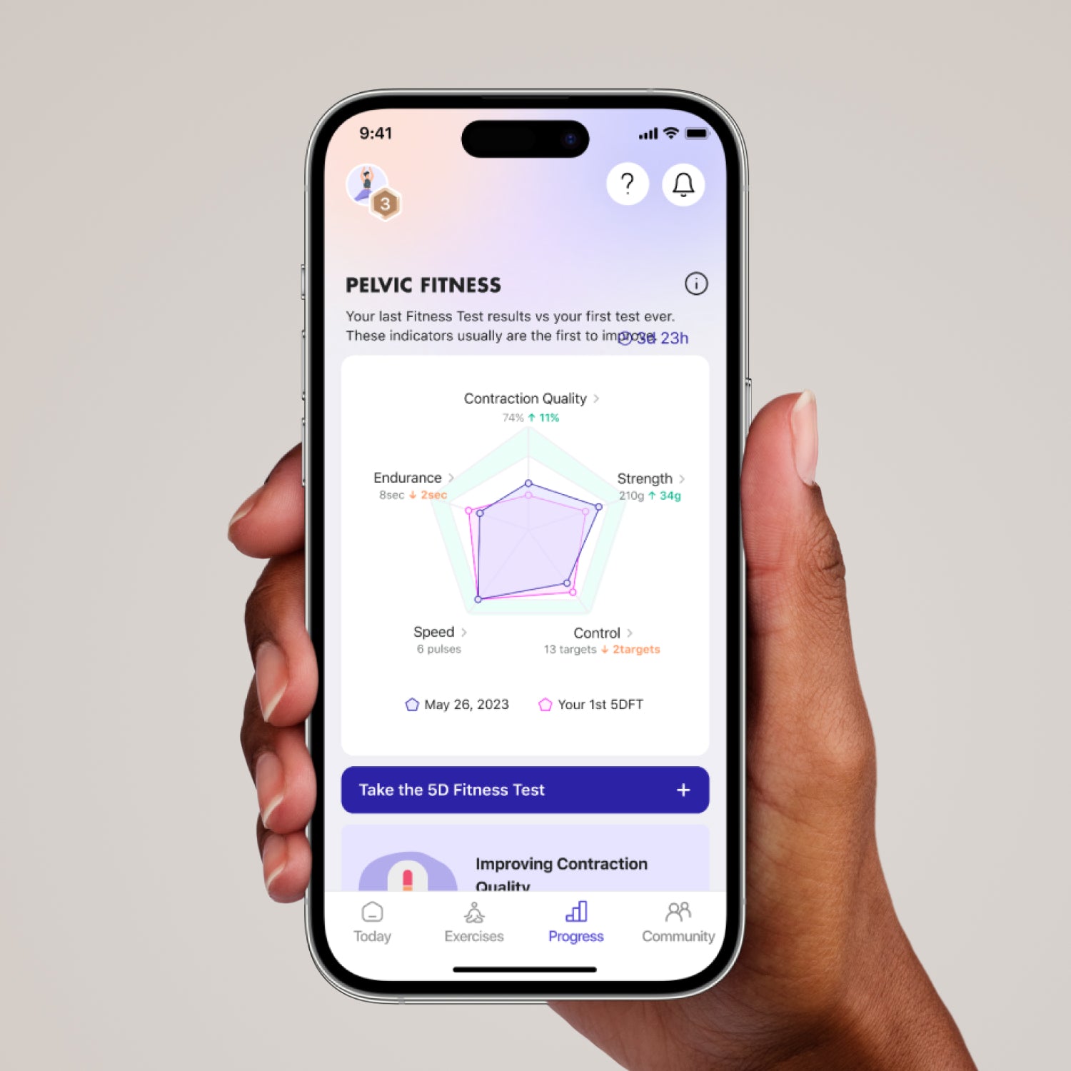 Stimuleer je motivatie en doe mee aan leuke, door experts ontworpen bekkenbodemoefeningen. Begin gewoon met drie tot vijf sessies van 10 minuten per week voor merkbare resultaten. Bovendien zie je je spieren in realtime werken!