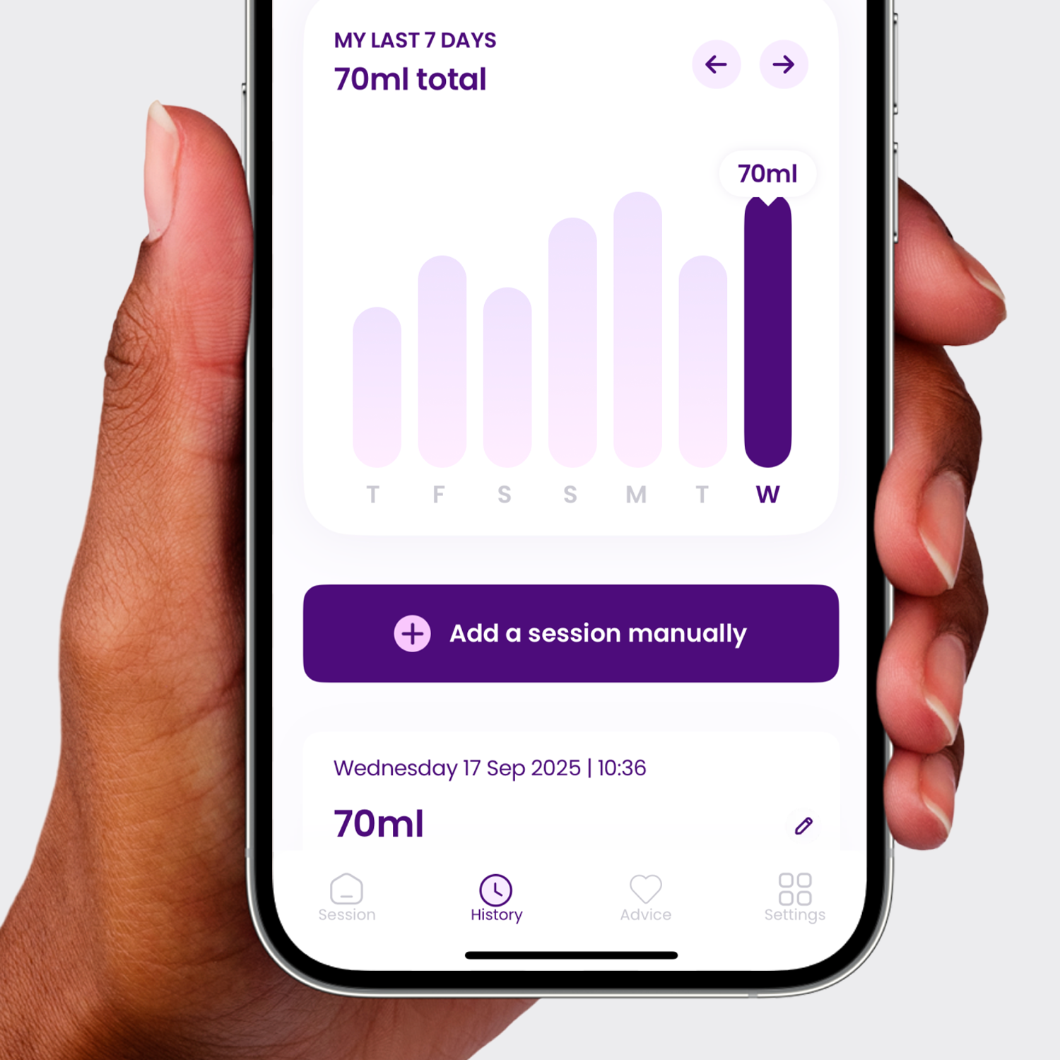 💆♀️ Vereenvoudig je kolfroutine door het melkniveau bij te houden en de kolf vanaf de app te bedienen zonder je uit te kleden
